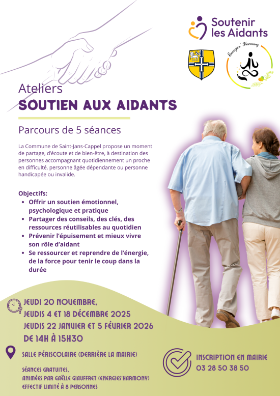 La Commune de Saint-Jans-Cappel propose un moment de partage, d’écoute et de bien-être, à destination des personnes accompagnant quotidiennement un proche en difficulté, personne âgée dépendante ou personne handicapée ou invalide.