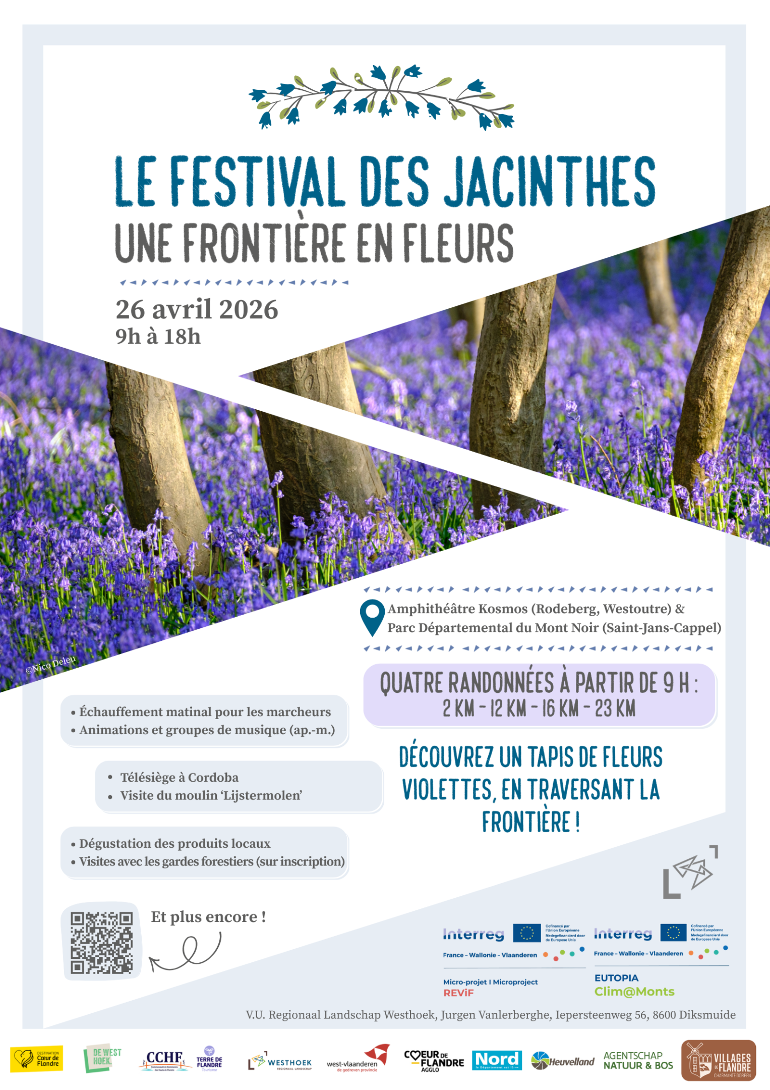 Organisation : Regionaal Landschap Westhoek, Coeur de Flandre agglo, CCHF, Province de Flandre-Occidentale, Westtoer, commune de Heuvelland, Agence flamande pour la Nature et la Forêt et Département du Nord, dans le cadre des projets Interreg REViF et Clim@Monts.
